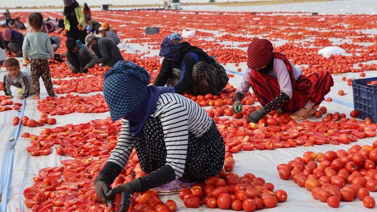 Diyarbakır’ın Çınar ilçesinde yetiştirilen domateslerin kurutma işlemi, kavurucu sıcağın altında yapılıyor. Kurutulan tonlarca domates, işlendikten sonra meze ve pizza sosu olarak kullanılmak üzere Avrupa’nın birçok ülkesine ihraç ediliyor.