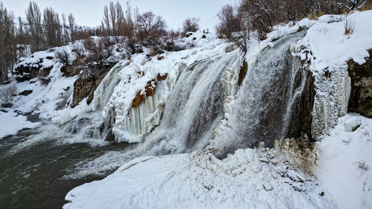 Genel Donan Muradiye Şelalesi'nin çevresi beyaza büründü! Van'da etkili olan kar yağışının ardından kısmen donan Muradiye Şelalesi'nin çevresi beyaz örtüyle kaplandı. 12.01.2026 - 11:57 12.01.2026 - 11:57 Loading...