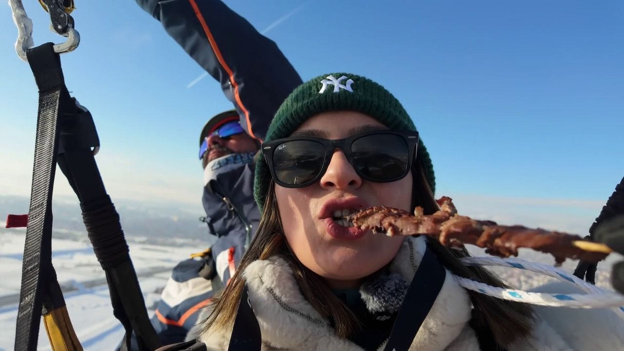 Genel Gökyüzünde cağ kebap keyfi! Palandöken'in 3100 rakımlı zirvesinde yamaç paraşütü ile süzülen Neşe Durdi ve Yusuf Okuyucu, Erzurum'un coğrafi işaretli yemeği olan cağ kebabını tadını çıkardılar. 24.02.2025 - 10:19 24.02.2025 - 10:19 Loading...
