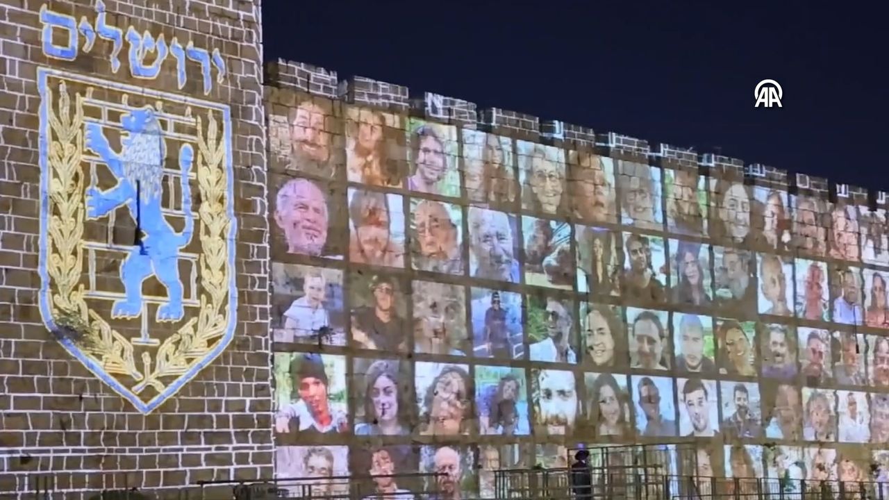 İsrail’e bağlı Kudüs Belediyesi, Eski Şehir’in etrafındaki surların batı Kudüs tarafında kalan kısımlarına ışıklandırma sistemi ile Hamas'ın abluka altındaki Gazze Şeridi'nde tuttuğu İsrailli esirlerin fotoğraflarını yansıttı.