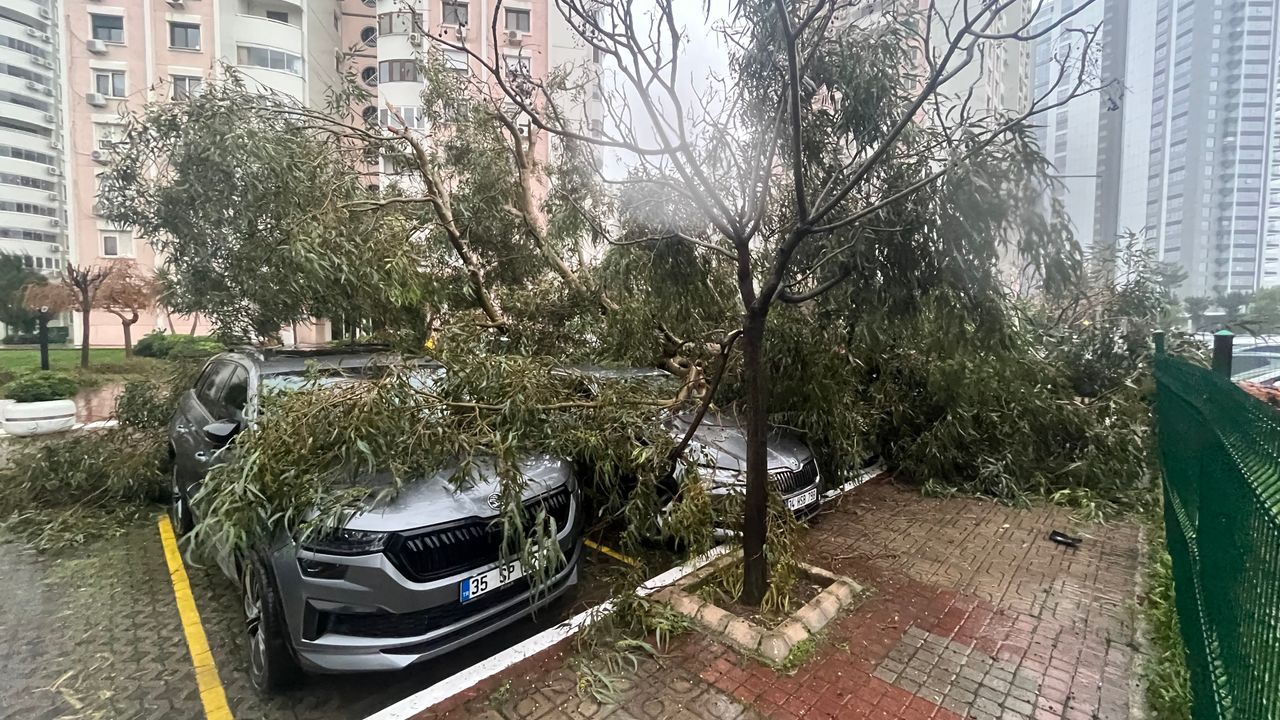 İzmir'de sabaha karşı etkisini gösteren kuvvetli sağanak yağış ve fırtına günlük yaşamı olumsuz etkilerken, şiddetli rüzgar nedeniyle yol kenarlarındaki ağaçlar otomobillerin üzerine devrildi, 5 araç hasar gördü. Cadde ve sokaklar göle dönerken, hava ve deniz ulaşımında aksamalar yaşandı.