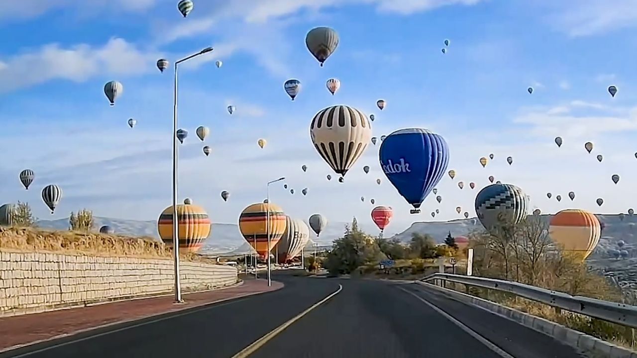 Kapadokya’da havalanan sıcak hava balonları, bölge semalarını renklendirdi. Günün erken saatlerinde gökyüzüne yükselen balonlar, ziyaretçilere bölgenin güzelliklerini kuş bakışı izleme imkanı sunuyor.