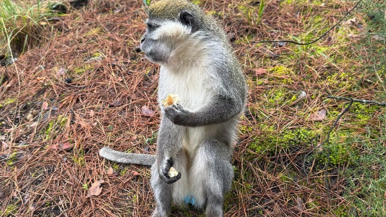 Denizli'de ormanda maymunla karşılaşan vatandaş, ekipler gelene kadar hayvanı oyalamaya çalıştığı anları kayıt altına aldı.