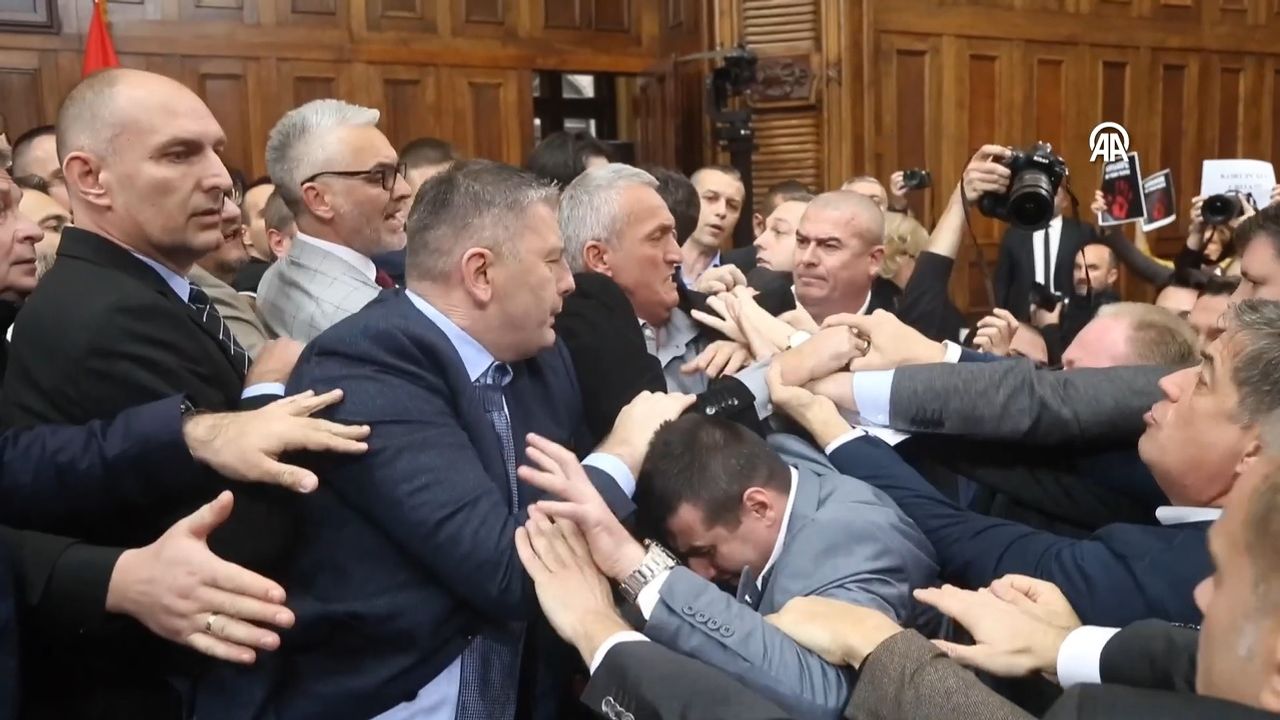 Sırbistan'ın kuzeyindeki Novi Sad'da bulunan tren istasyonunda 15 kişinin ölümüne yol açan kaza nedeniyle Sırbistan Ulusal Meclisinde muhalefet ile iktidar milletvekilleri arasında tekmeli, yumruklu kavga çıktı.