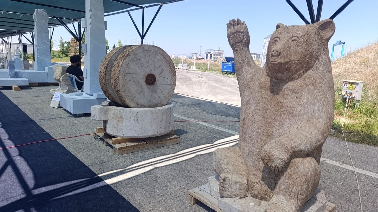 Afyonkarahisar’da dün kapılarını açan blok mermer fuarında sanatçıların mermeri işleyerek yaptıkları birbirinden güzel eserler görücüye çıkarken, sanatçıların mermerden yaptıkları motosiklet ile selam veren ayı figürü ise büyük ilgi gördü.