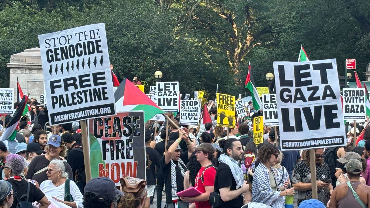 ABD’nin New York kentinde on binlerce kişi, İsrail’in Gazze’deki saldırılarını protesto etmek için sokaklara çıkarak, bölgedeki açlığa son verilmesi, insani yardımların önünün açılması ve acil ateşkes sağlanması çağrısında bulundu. Protestolara bir dönem tutuklu bulunan Filistinli aktivist ve eski Columbia Üniversitesi öğrencisi Mahmoud Khalil de katıldı.