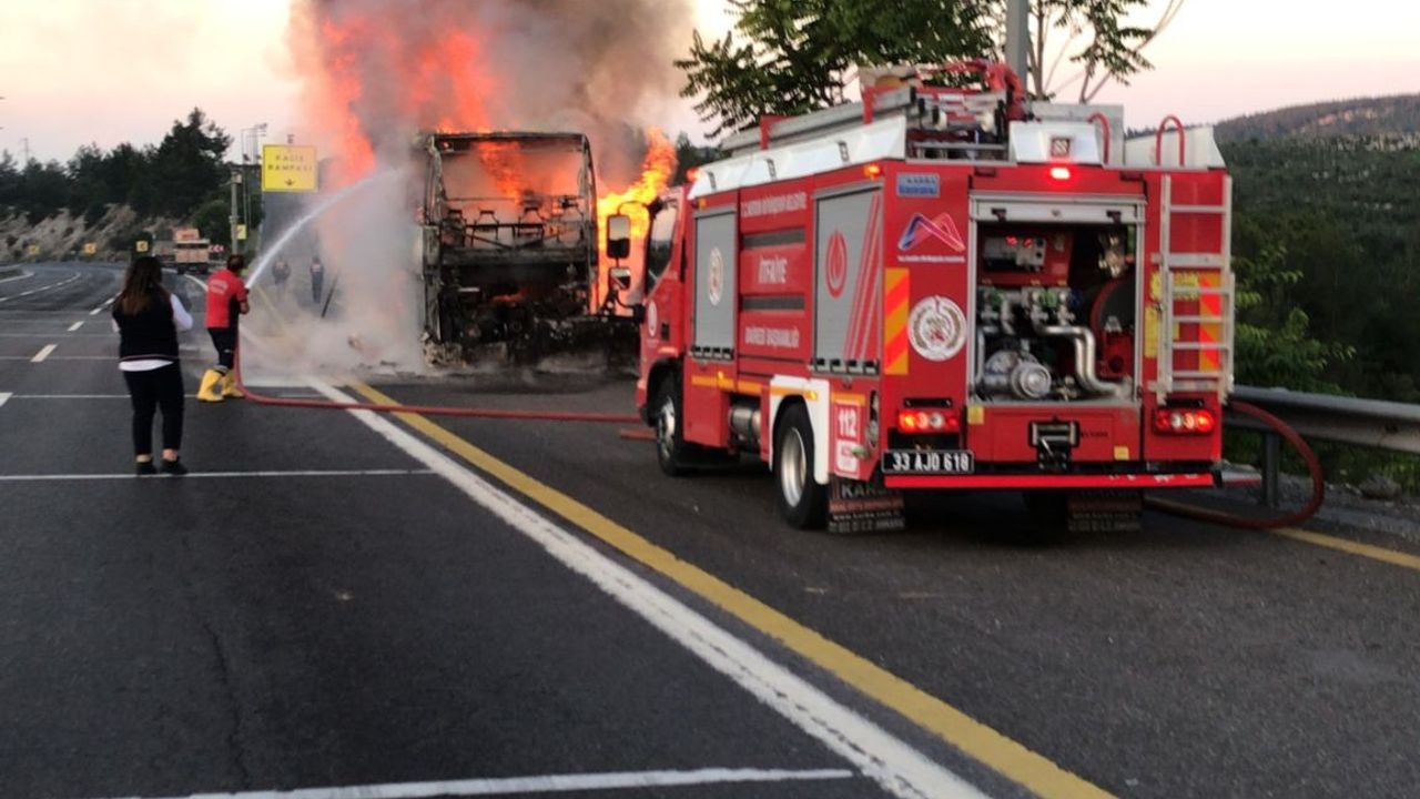 Alınan bilgiye göre, sabah saatlerinde TEM otoyolu Damlama mevkii Adana istikametinde E.K.'nin sürücülüğünü yaptığı 01 AJZ 590 plakalı yolcu otobüsünün motor kısmı yanmaya başladı.