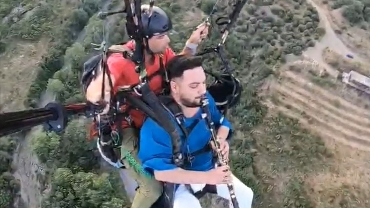 Genel Paraşütte klarnet çaldı Tekirdağ'ın Şarköy ilçesinde yamaç paraşütüyle gökyüzüne süzülen müzisyen, havada klarnet çalarak hem nefes kesen hem de kulakların pasını silen sıra dışı bir performansa imza attı. 17.06.2025 - 13:21 17.06.2025 - 13:21 Loading...