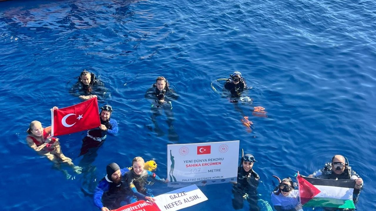 Milli sporcu Şahika Ercümen, Antalya'nın Kaş ilçesinde, paletsiz değişken ağırlık kategorisinde 107 metreye 3 dakika 21 saniyede dalarak dünya rekoru kırdı. Kendi rekorunu geliştirerek bir kez daha tarihe geçen Ercümen, yaklaşık 40 katlı bir bina yüksekliğine eşdeğer derinliğe tek nefeste ulaştı.