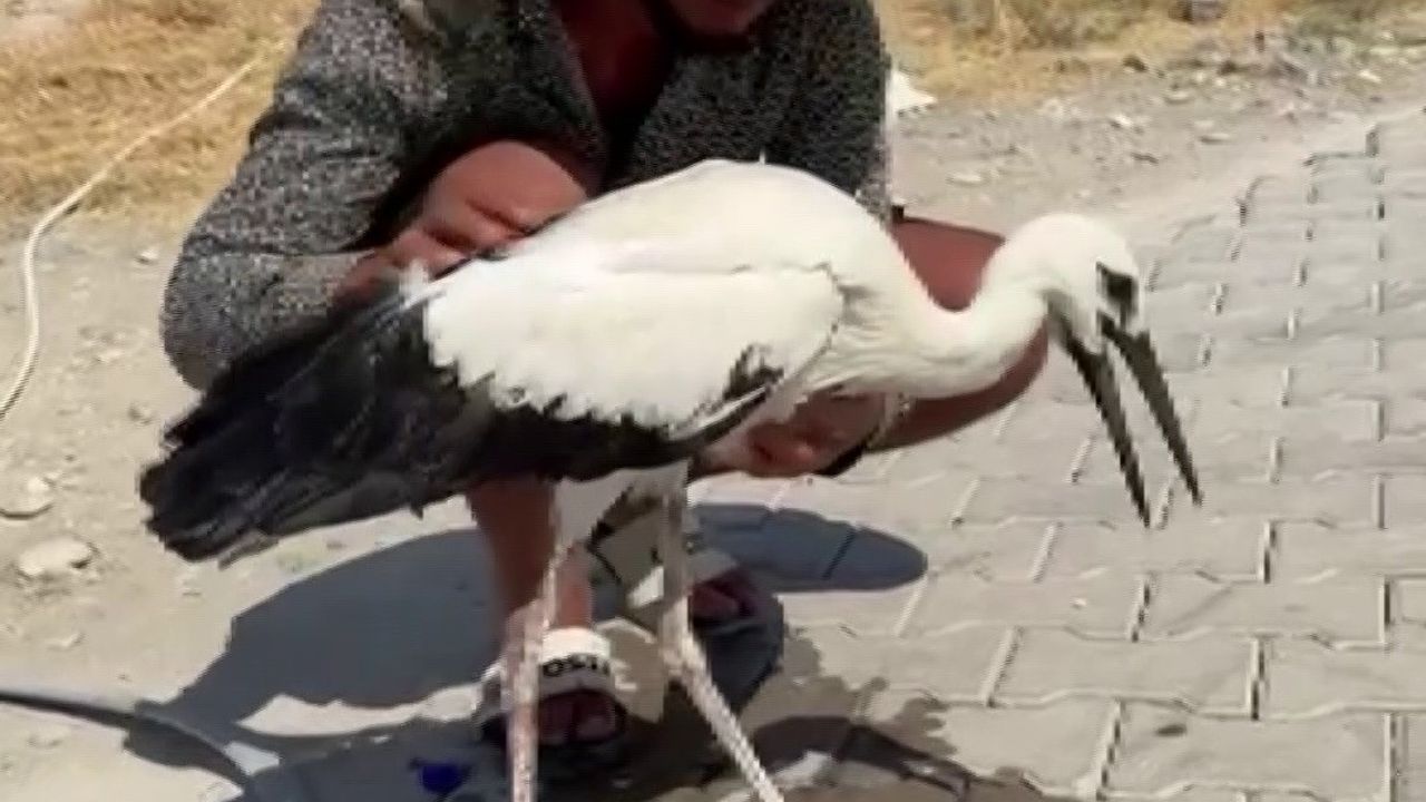 Hava sıcaklıklarının 43 dereceyi bulduğu Adıyaman’da, sıcaktan baygınlık geçiren leyleği köylüler kurtardı. Adıyaman merkeze bağlı Boztepe Köyü'nde Muhammed Ziya Gürsoy ve Emin Açıkgöz isimli iki köylü, bitkin halde buldukları leyleğe sahip çıktı.