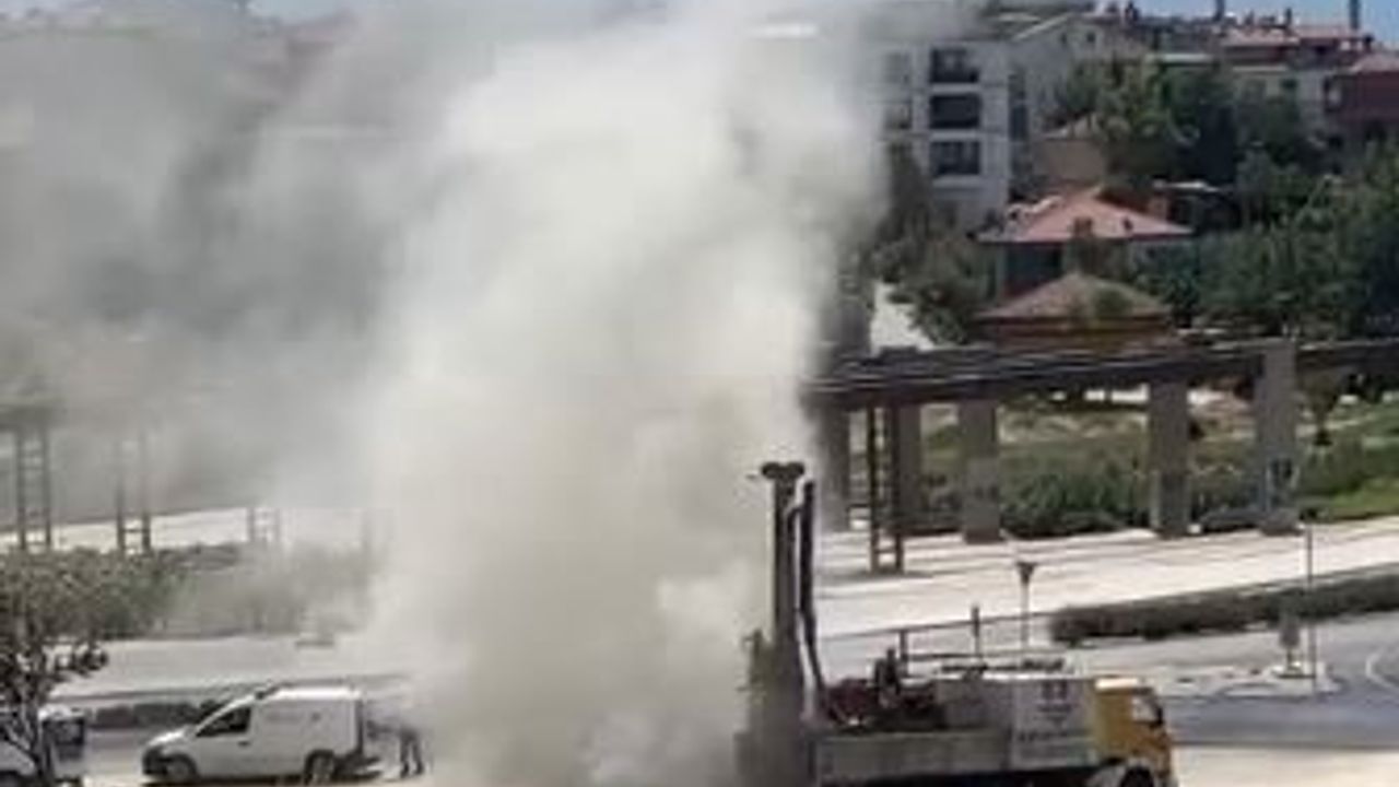 Denizli'nin Pamukkale ilçesinde sondaj çalışması esnasında doğalgaz ana boru hattında patlama meydana geldi. Patlamanın ardından gökyüzünde yükselen yoğun beyaz dumanlar ve etrafa yayılan gaz kokusunun müdahaleler sürüyor.