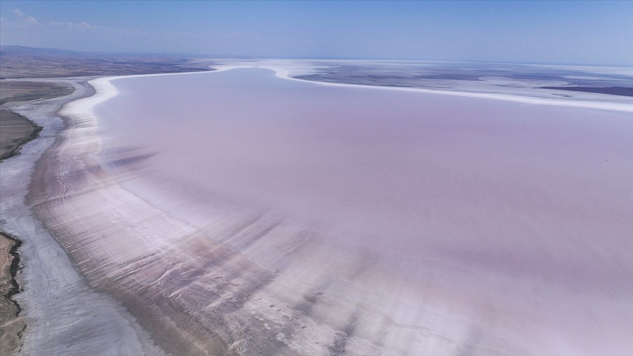 Tuz Gölü'ndeki renk değişimi görsel şölen sunuyor