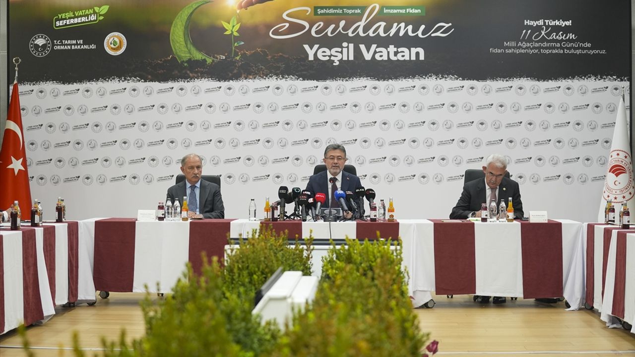 Tarım ve Orman Bakanı İbrahim Yumaklı, Yeşil Vatan Seferberliği kapsamında ülke sathında, 1 yılda 550 milyon fidan ve tohumu toprakla buluşturmayı hedeflediklerini belirterek, "11 Kasım'da, 81 ilde 922 ilçede fidan dikim alanlarında, 7'den 77’ye bütün vatandaşlarımızla birlikte fidan dikeceğiz." dedi.