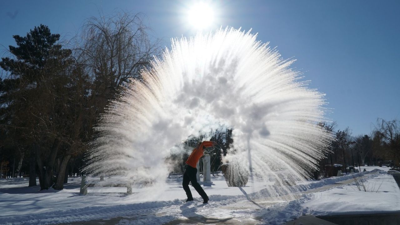 Doğu’da soğuk hava etkisini iyice artırdı. Araç camlarının buz tuttuğu ve gece hava sıcaklığının eksi 20 dereceye kadar düştüğü Erzincan’da havaya serpilen sıcak su yere buz taneciği olarak düştü. Soğuk havanın ne kadar etkili olduğunu göstermek isteyen vatandaşlar havaya sıcak su serperek test etti. Havaya serpilen suyun yere buz tanecikleri olarak düştüğü gözlemlendi.